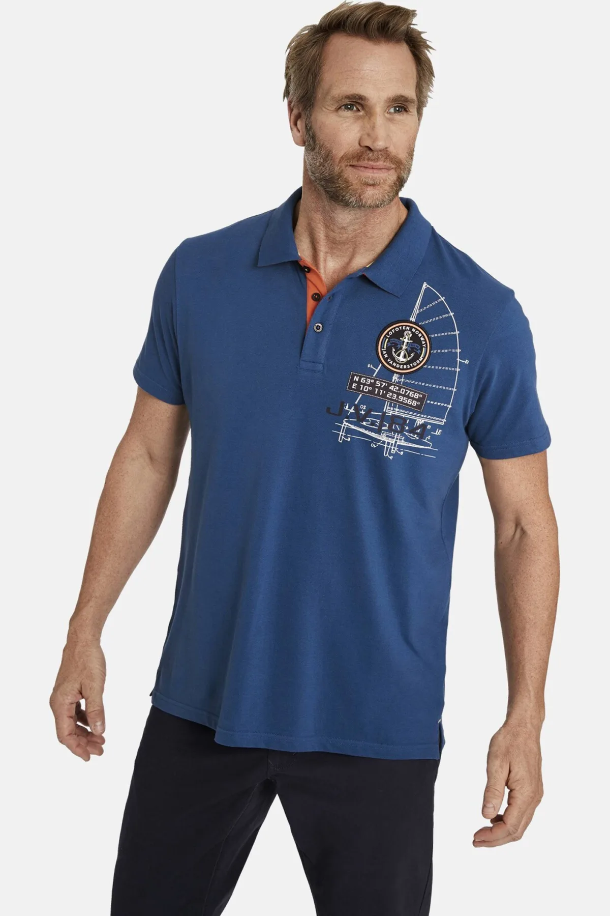 Jan Vanderstorm regular fit polo NICCO Plus Size met printopdruk blauw