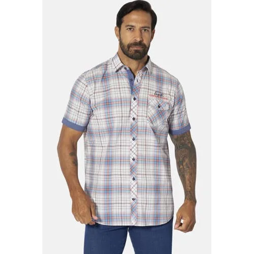 JAN VANDERSTORM is uw expert voor herenmode in grote maten. Het POULAR overhemd met korte mouwen van JAN VANDERSTORM is een casual klassieker voor warme dagen. Met zijn geruite dessin en contrasterende kraag en mouwboorden is dit overhemd in grote maten een echte eyecatcher. De kleine patch op de linker bovenarm en het borduursel boven de borstzak geven het overhemd een sportieve touch. De knoopsluiting heeft ook een contrasterende kleur en zorgt voor een harmonieuze totaalindruk. Het POULAR overhemd met korte mouwen is een stuk dat je meteen in een goed humeur brengt! Materiaal 100% katoen. Machinewasbaar. +FIT COLLECTIE: Comfortabele stijl uit onze +Fit collectie. Met onze speciale +Comfort snit is deze top langer aan de voorkant en kan daarom in een broek worden gedragen zonder uit te zakken, zelfs als je een grote taille hebt.
