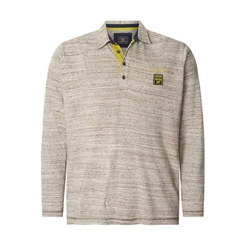 JAN VANDERSTORM is uw expert voor herenmode in grote maten. Het ENDRE poloshirt met lange mouwen van JAN VANDERSTORM is een polo met kraag en contrasterende knoopsluiting. Links op de borst zit een patch en een klein borduursel, die samen een avontuurlijke uitstraling geven. Bijzonder cool zijn het nonchalante effectgaren en de structuur, die aanvoelt als een sportieve mix van piqué en breisel. Korte zijsplitten zorgen voor voldoende bewegingsvrijheid. U kunt ENDRE combineren met bijna alles wat uw hartje begeert. Dus ga de natuur in, ENDRE wacht op u! Materiaal 75% katoen, 25% polyester. Machinewasbaar. +FIT COLLECTIE: Comfortabele stijl uit onze +Fit collectie. Met onze speciale +Comfort-pasvorm is dit bovenstuk aan de voorkant langer gesneden en kan het dus ook bij een uitgesproken buikomvang in de broek worden gedragen zonder uit te glijden.