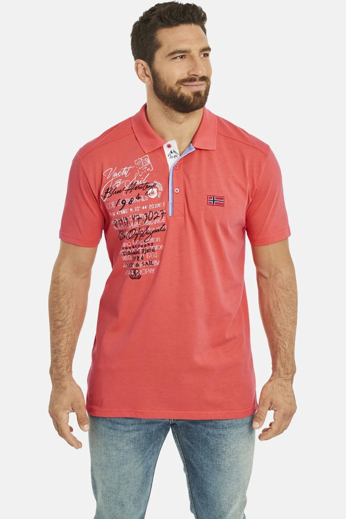 Jan Vanderstorm regular polo JANO Plus Size koraalrood
