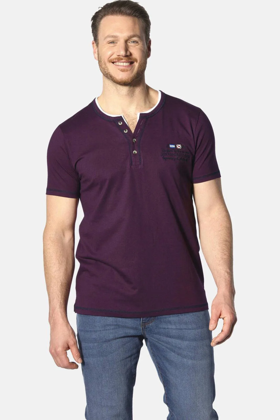 JAN VANDERSTORM is uw expert voor herenmode in grote maten. Altijd een goede keuze: het T-shirt HAFTOR van JAN VANDERSTORM combineert klassieke nonchalance met moderne flair. Dit comfortabele shirt overtuigt door een vlotte serafinohals met vier knopen, die het shirt een echte blikvanger maakt. Voor Scandinavische flair zorgt het borduursel met kleine vlaggen links op de borst, dat maritieme charme uitstraalt. Een prachtig contrast op de hals is een speelse, dynamische finishing touch. Ook de naden van het shirt zijn stijlvol uitgevoerd in een contrastkleur. Met het T-shirt HAFTOR kunt u erop vertrouwen dat u er te allen tijde cool uitziet. Materiaal: 100% katoen. Geschikt voor de wasmachine.