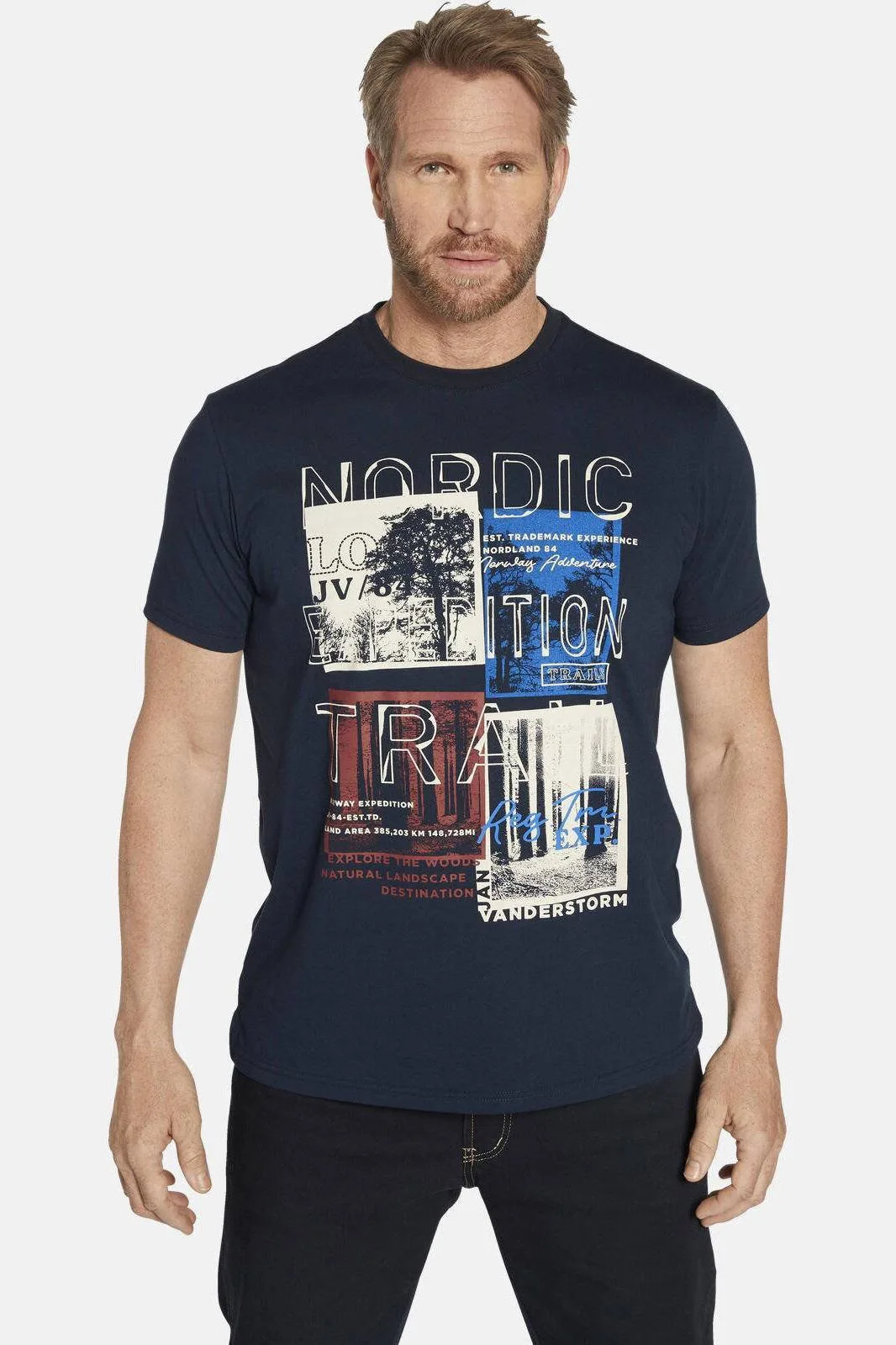 JAN VANDERSTORM is uw expert voor herenmode in grote maten.Ongeremd groeiende bomen, met mos bedekte rotsen en schilderachtige meren. Wij hebben de bossen van Scandinavië voor u vastgelegd op een shirt. Maar dat is nog niet alles: het T-shirt TANDRUP heeft een ronde hals en zijsplitten – afgewerkt met contrasterend garen – die voor meer bewegingsvrijheid zorgen. Uiteraard mag een goede pasvorm ook niet ontbreken. Comfort fit. 100% katoen. Geschikt voor de wasmachine.