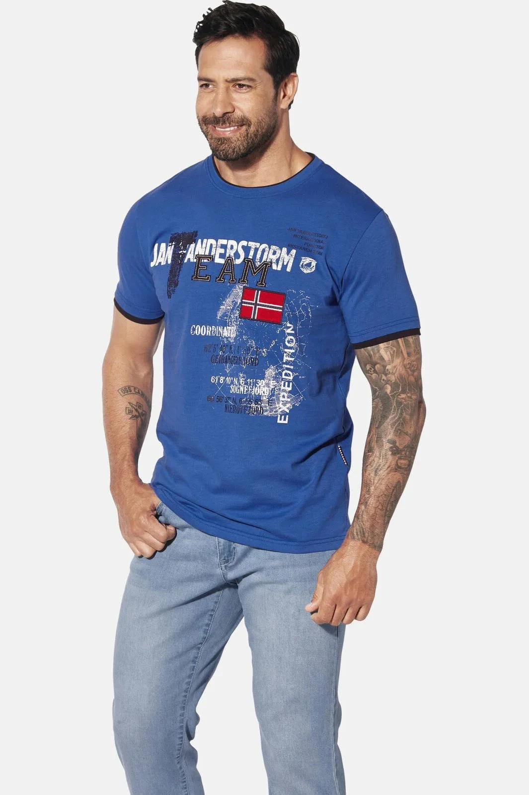 Jan Vanderstorm T-shirt SÖLVE Plus Size blauw Prijzen