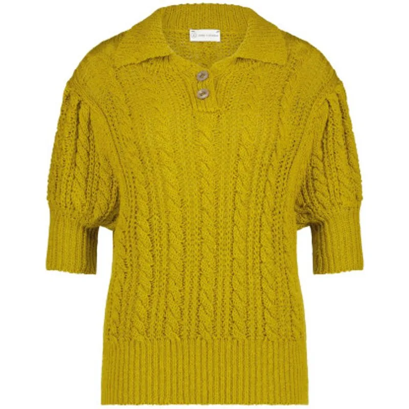 De Pullover Mais PU KN Mais PU van JANE LUSHKA is een gebreide trui met kraagje met knoopsluiting en korte mouwen. De mouwen en onderzijde van de trui zijn afgewerkt met een boord. Dit model is uitgevoerd in de kleur Lime.