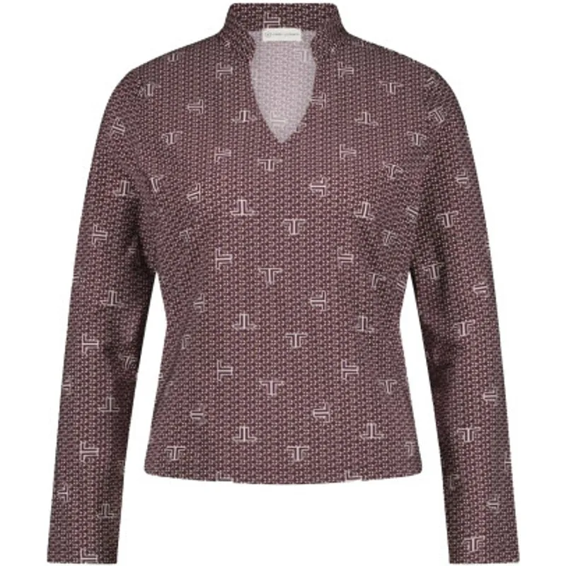 De Top Harper Technical Jersey van JANE LUSHKA is een top met een opstaand kraagje, V-hals, lange mouwen en een rechte afsnede. Deze top is uitgevoerd in een JL print in de kleur Purple.
