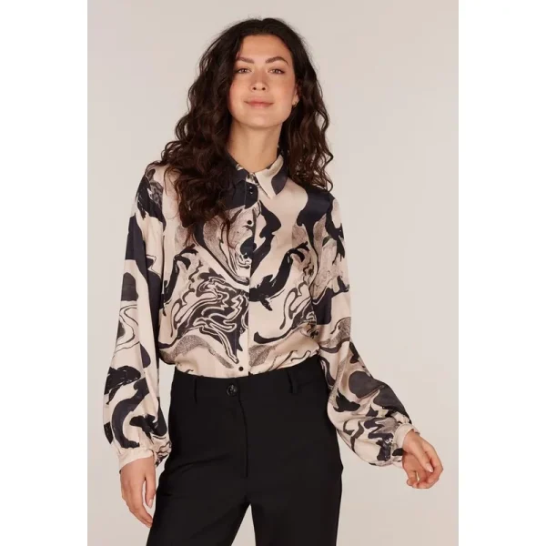 Jansen Amsterdam Carola w24 blouse wgp771 000131 sand/black