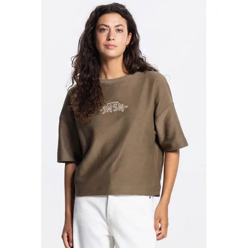 Fris, relaxed en toch verzorgd, dat is de uitstraling van de JANSEN Amsterdam ds sweater. Deze olijfgroene damestrui heeft een kort model met korte mouwen, ideaal voor het voorjaar en voor dagen waarop je graag luchtig maar aangekleed gaat. De ronde hals en rechte mouwen geven een rustige basis, terwijl de subtiele logo borduursels voor een moderne, stadsgerichte look zorgen.Kenmerken van deze sweater Gemaakt van 100% katoen, wat zacht aanvoelt op de huid en geschikt is voor dagelijks gebruik Kort model dat mooi valt op een hoge jeans, pantalon of rok Korte mouwen, perfect voor het lente seizoen of laagjes in de overgangsperiode Ronde hals voor een tijdloze, makkelijke pasvorm Logo borduursel als detail voor een verzorgde uitstraling Geen sluiting, je trekt de trui eenvoudig over het hoofd aan en uit Wasbaar op 30 graden en lauw strijkbaar, niet drogen in de droogtrommelLicht en luchtig in je dagelijkse outfitsDeze sweater is een praktische keuze voor dagen waarop je comfortabel gekleed wilt zijn zonder in te leveren op een verzorgde look. Combineer de olijfgroene kleur met een lichte jeans of een zwarte broek voor een rustige, moderne uitstraling. Door de korte lengte komt je taille mooi uit, wat deze trui ook geschikt maakt voor hoge broeken en rokken.JANSEN Amsterdam, citystyle met aandachtJANSEN Amsterdam staat voor kleding die past bij het stadsleven, met oog voor detail en draagbaarheid. De collecties combineren een moderne pasvorm met doordachte afwerkingen, zodat je elke dag kunt vertrouwen op kleding die goed aansluit en er verzorgd uitziet. Deze sweater uit de NOEKA SS26 boutique collectie sluit daar naadloos op aan.Een comfortabele, katoenen sweater die je garderobe rustig en toch eigentijds aanvult.