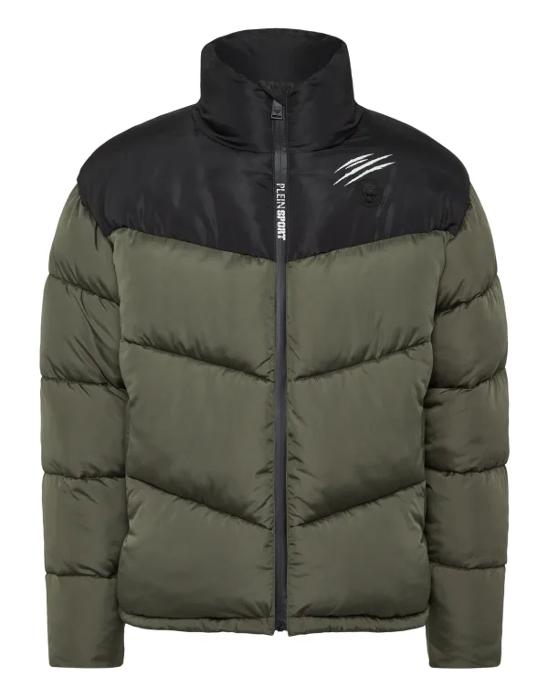 Check out this padded and insulating bomber jacket suited for before and after your training sessions. Warm, light and optimal protection. Padded and quilted nylon Logoed, rubberized patch sewn at left chest Contrasting nylon insert Zip fastener Slit pockets with zip Cuffs with elastic Inner lining Down insulation