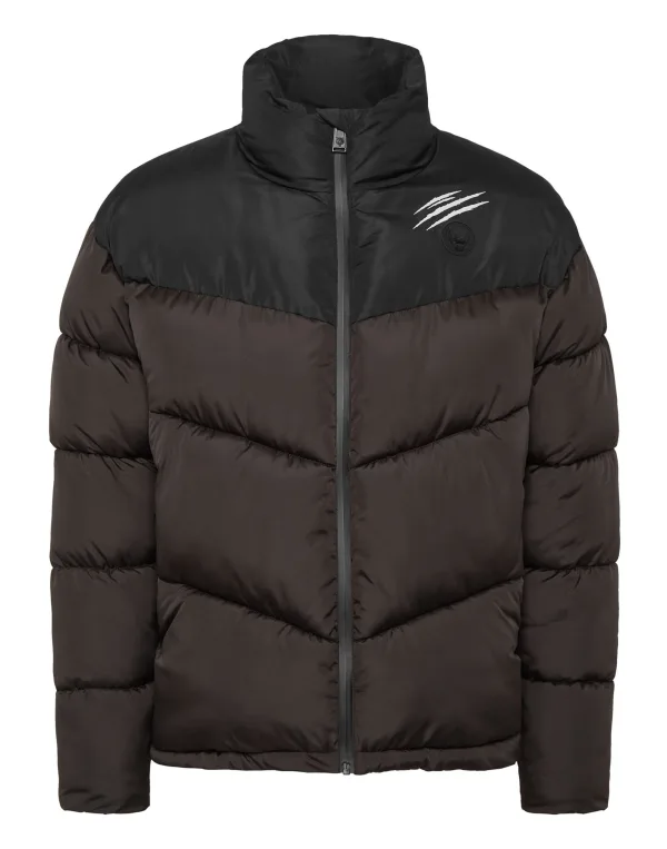 Check out this padded and insulating bomber jacket suited for before and after your training sessions. Warm, light and optimal protection. Padded and quilted nylon Logoed, rubberized patch sewn at left chest Contrasting nylon insert Zip fastener Slit pockets with zip Cuffs with elastic Inner lining Down insulation