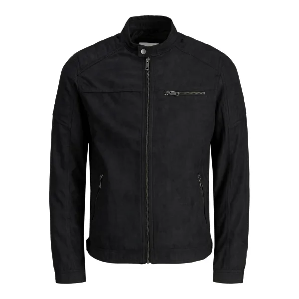 Herenjas van JACK & JONES;Duurzaam materiaal;Recht model;Bikerlook;Smalle opstaande kraag met trensje met drukknoop;Ritssluiting;Ritszakken;Ruglengte bij maat M: 65 cm;Schouderbreedte bij maat M: 45 cm;Mouwlengte bij maat M: 67 cm