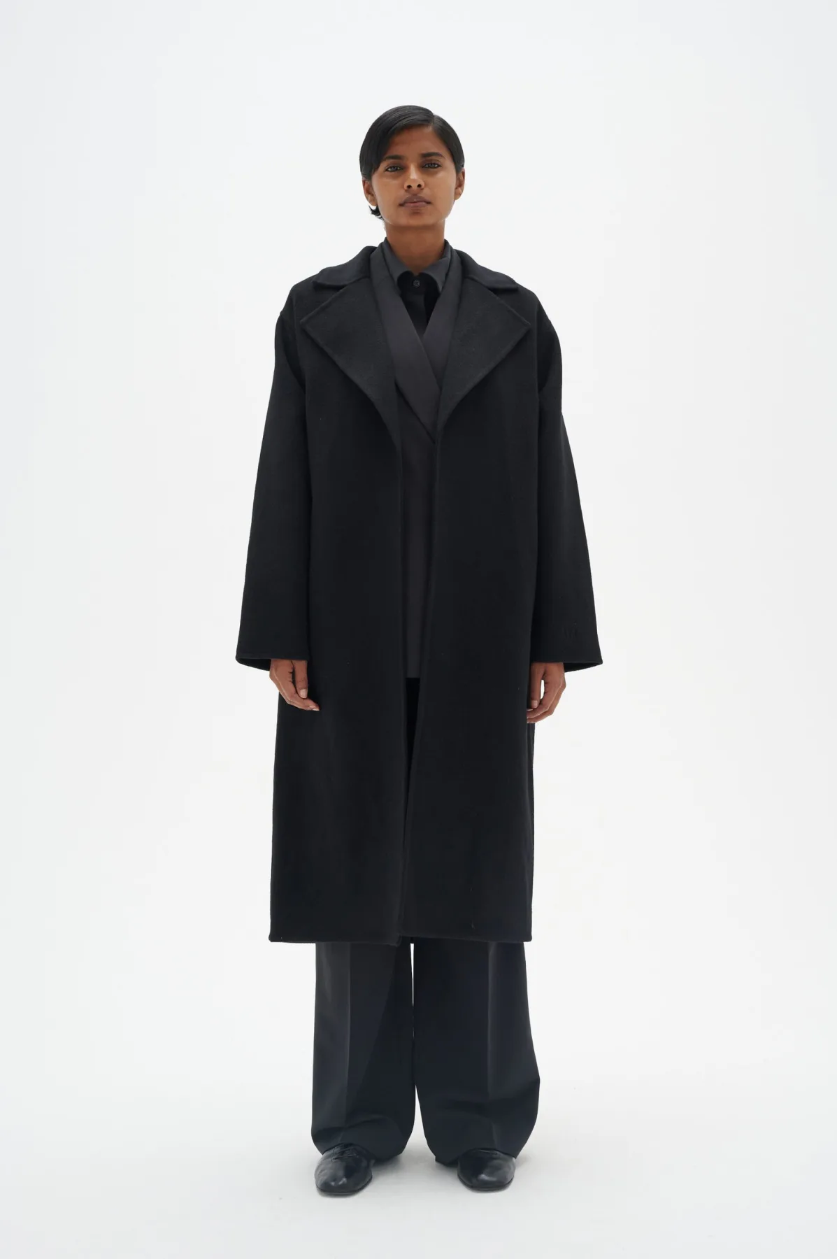 Deze damesmantel biedt een ontspannen pasvorm, klassieke reverskraag en ceintuur in de taille. Lange mouwen en een midi-lengte zorgen voor comfort en een tijdloze uitstraling.