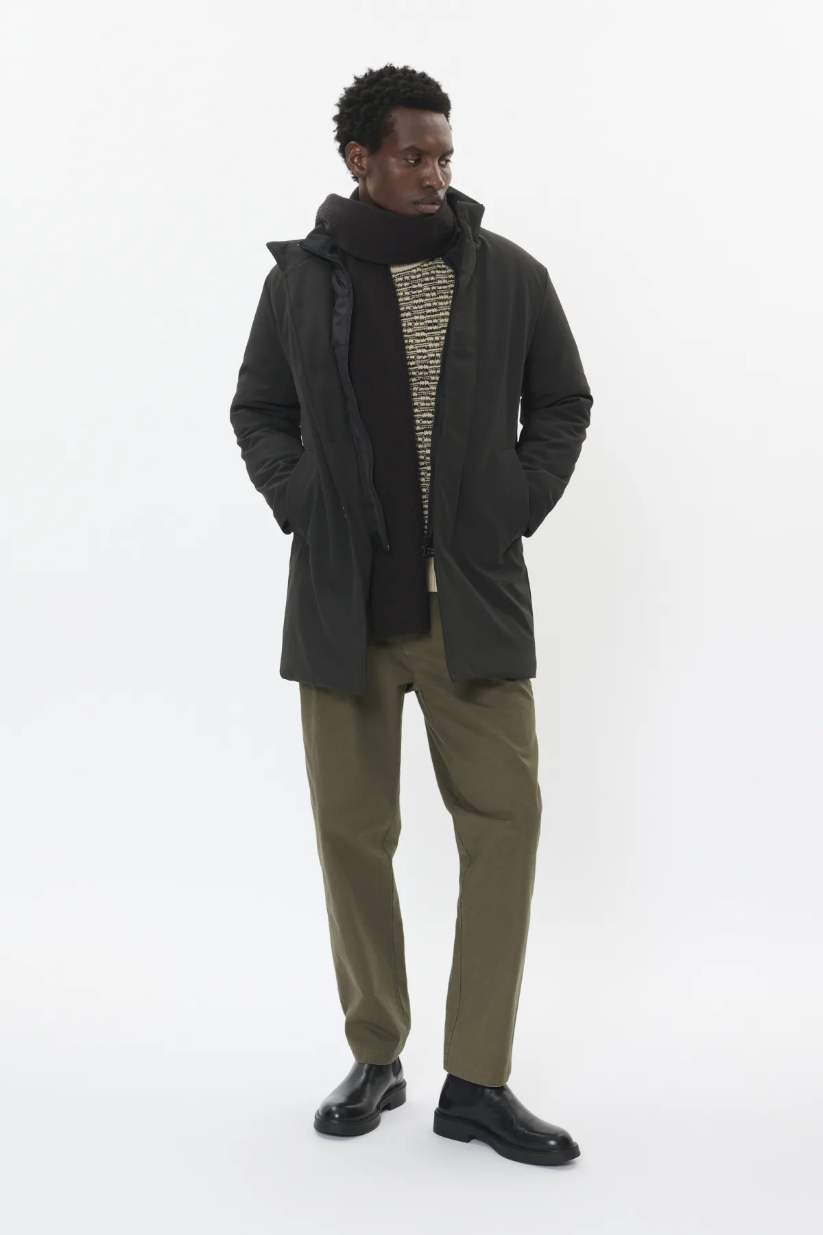 Heren winterjas met eigentijdse pasvorm en strak silhouet. Voorzien van hoge kraag, verborgen sluiting en lange mouwen voor extra comfort en stijl. Wassen op 30°, niet bleken, drogen in droger behoedzaam, Druipnat ophangen, koud strijken max. 110° C, 90% Polyester,10% Elastaan