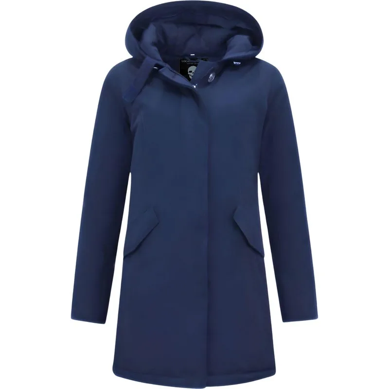 Jas met Capuchon Dames – Lange Winterjas Dames – Getailleerde Jas – Blauwe Jas