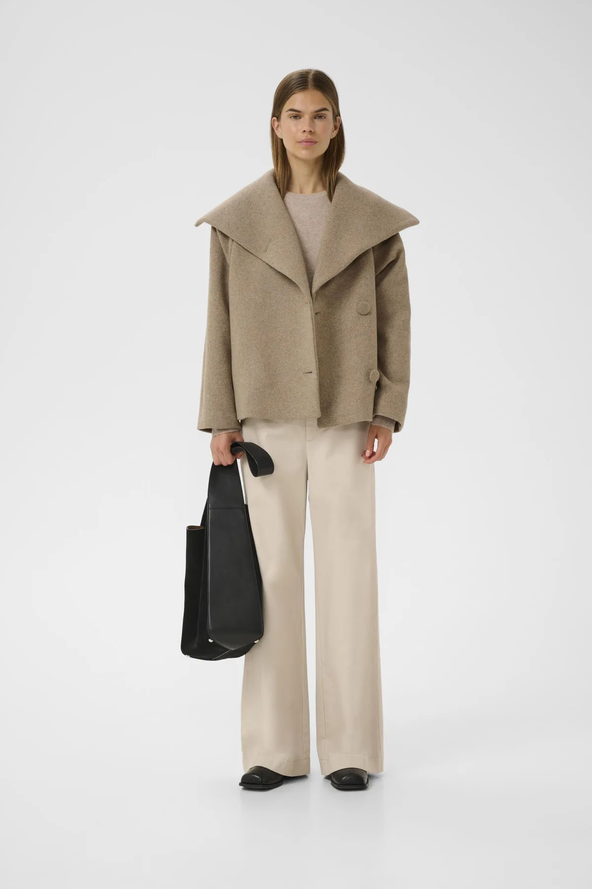 Dames jas met ontspannen pasvorm, brede kraag en minimalistische knoopsluiting. Comfortabel en stijlvol voor zowel dagelijks als zakelijk gebruik.
