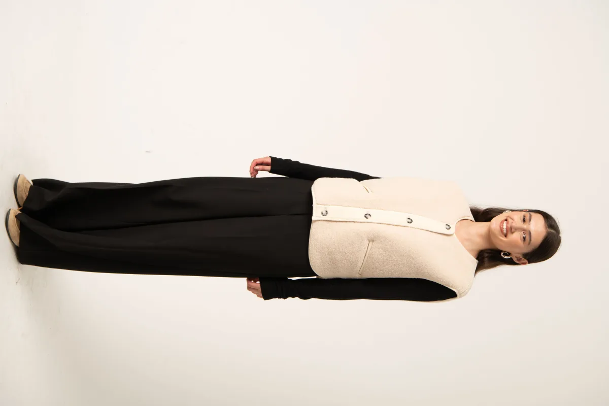 Dit damesvest heeft een relaxte pasvorm, moderne boxy snit, ronde halslijn en knoopsluiting. Met handige voorzakken voor comfort en ideaal voor gelaagde looks. Fijne was 30°, niet bleken, drogen in droger behoedzaam, Druipnat ophangen in de schaduw, niet strijken, 100% Polyester