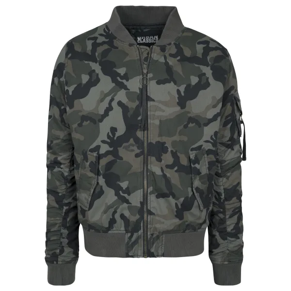 De Vintage Camo bomberjack van Urban Classics is voorzien van alle typische kenmerken van een bomber: licht gerimpelde mouwen, een zak op de bovenarm, platte zijzakken en een kleine geribde kraag. Maar het camouflagepatroon en de vervaagde uitstraling geven deze klassieker een compleet nieuwe en coole look - een must voor bomfans.Oberstoff 1 : 100% Baumwolle, Twill, 170 GSM Oberstoff 2 : 100% Polyester, Taffeta, 60 GSM Wattierung : 100% Polyester, Polyfill, 100 GSM
