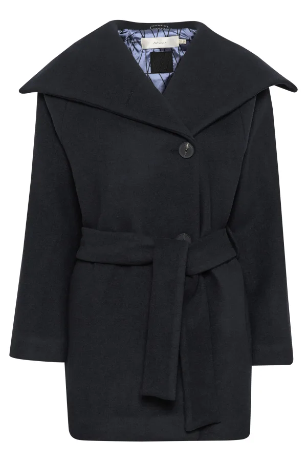 Deze wrap-jas met brede reverskraag en relaxte pasvorm heeft een taille-ceintuur voor een elegante look. Middellang model met lange mouwen en zachte voering voor dagelijks en zakelijk gebruik.
