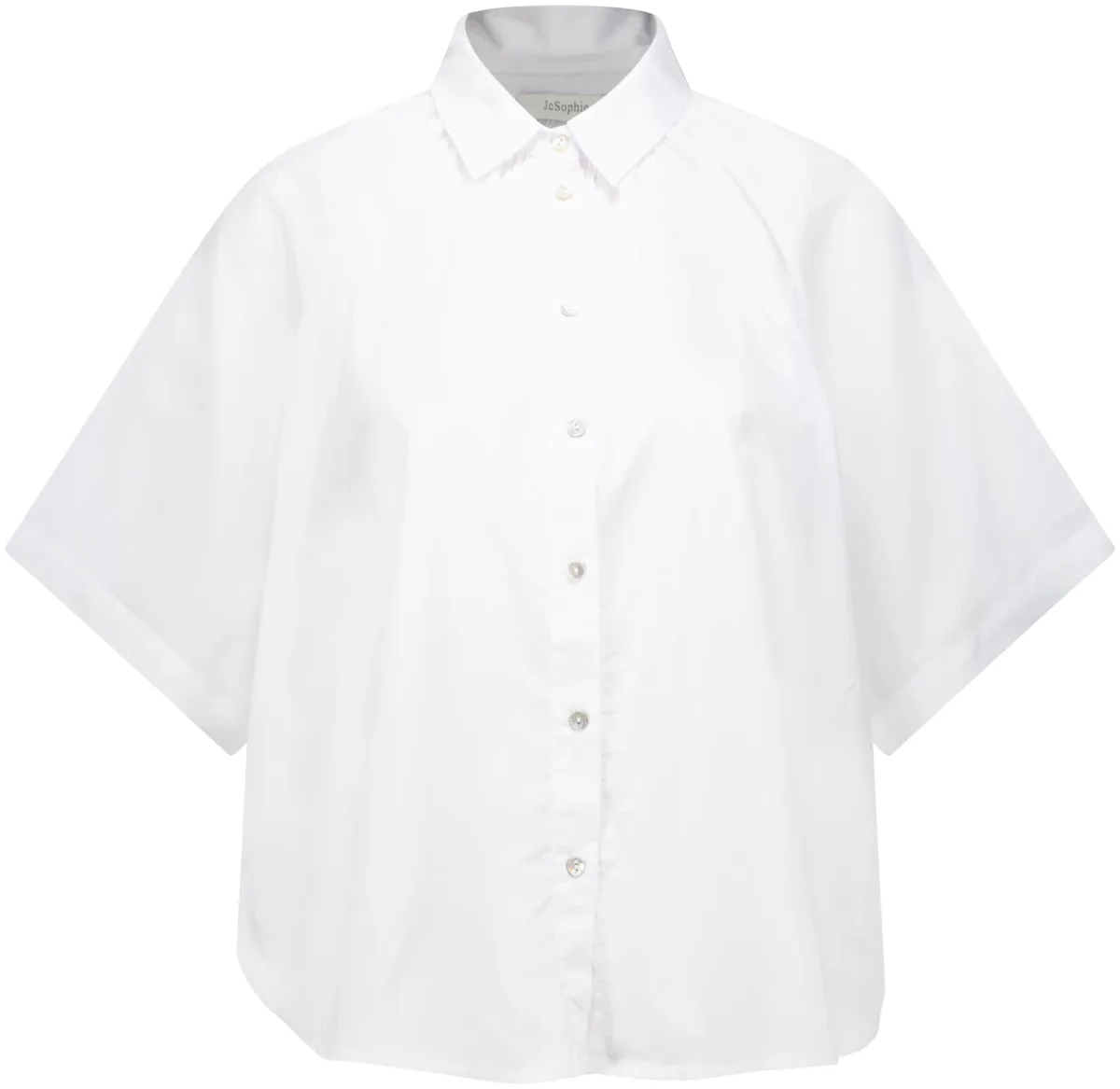 Blouse Leonore van Jc Sophie is een effen overhemd met spreidkraag, knoopsluiting en korte mouwen. De regular pasvorm valt ruim en recht, met een iets langere achterkant en afgeronde zoom. Draagt luchtig en combineert makkelijk met een pantalon of jeans voor casual of netjes.