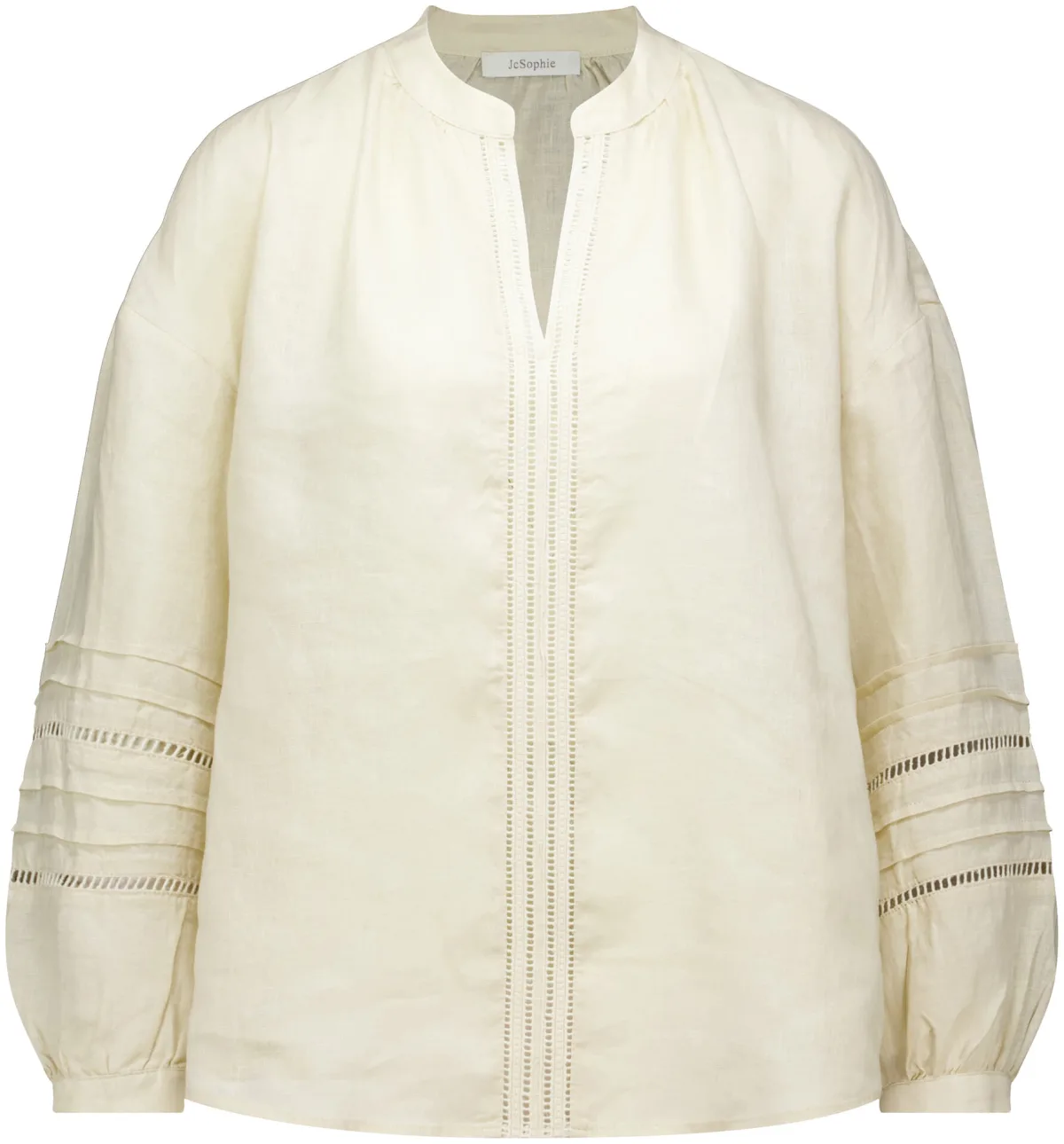 Blouse Leslie van JC Sophie is een casual dames blouse met een losse pasvorm. De blouse heeft een opstaande kraag en een split halslijn, gecombineerd met lange mouwen voorzien van elastische manchetten. Het effen ontwerp maakt het veelzijdig en stijlvol.