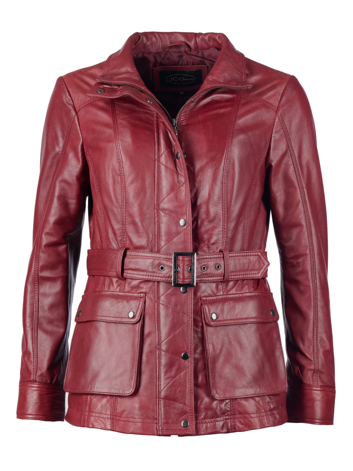 Design: Opgezette zakken, Met riem; Type sluiting: Ritssluiting; Type jas: Bikerjack; Voering: Licht gevoerd; Materiaal: Leer; Motief: Effen; Extra's: Op staal naden, Riemlussen; Pasvorm: Slanke pasvorm
