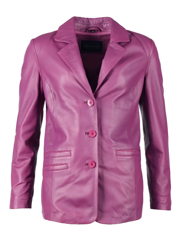 Design: Revers kraag, Zakken aan de zijkant; Type sluiting: Knoopsluiting; Voering: Licht gevoerd; Materiaal: Leer; Motief: Effen; Pasvorm: Aansluitende pasvorm