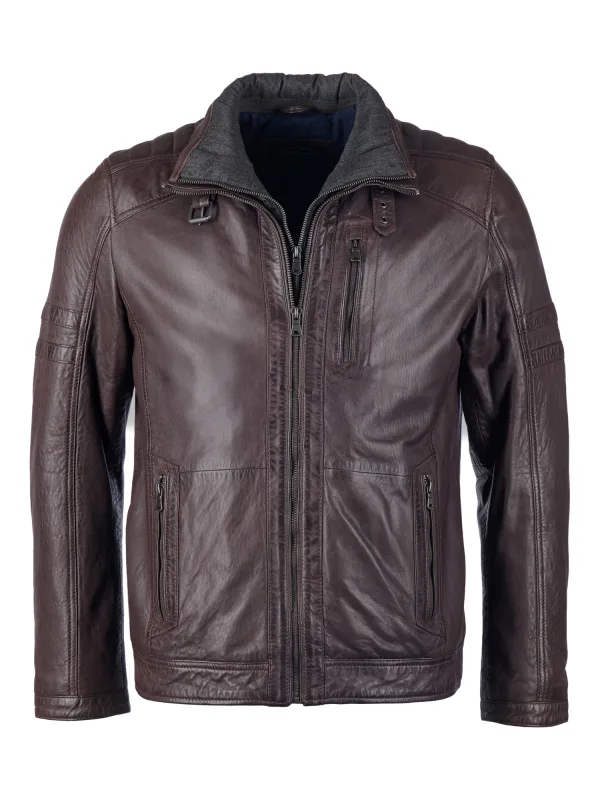 Design: Borstzak, Ritszakken aan de zijkant; Type sluiting: Ritssluiting; Type jas: Bikerjack; Voering: Licht gevoerd; Materiaal: Leer; Motief: Effen; Extra's: Stevige stof; Pasvorm: Normale pasvorm