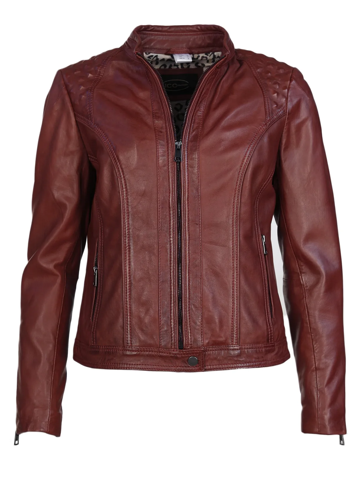 Design: Zakken aan de zijkant, Ritszakken aan de zijkant; Type sluiting: Ritssluiting; Type jas: Bikerjack; Voering: Licht gevoerd; Materiaal: Leer; Motief: Effen; Pasvorm: Aansluitende pasvorm