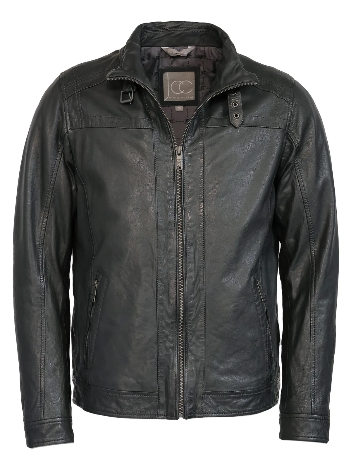 Design: Ritszakken aan de zijkant; Type sluiting: Ritssluiting; Type jas: Bikerjack; Voering: Licht gevoerd; Materiaal: Leer; Motief: Effen; Extra's: Op staal naden; Pasvorm: Normale pasvorm