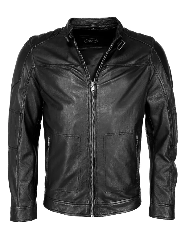 Design: Gevoerde zoom/rand, Ritszakken aan de zijkant; Type sluiting: Ritssluiting; Type jas: Bikerjack; Voering: Licht gevoerd; Materiaal: Leer; Motief: Effen; Extra's: Gladde stof, Stevige stof; Pasvorm: Normale pasvorm