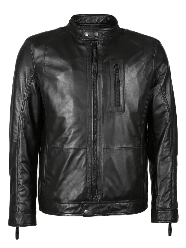 Design: Borstzak, Zakken aan de zijkant; Type sluiting: Ritssluiting; Type jas: Bikerjack; Voering: Licht gevoerd; Materiaal: Leer; Motief: Effen; Extra's: Op staal naden; Pasvorm: Normale pasvorm