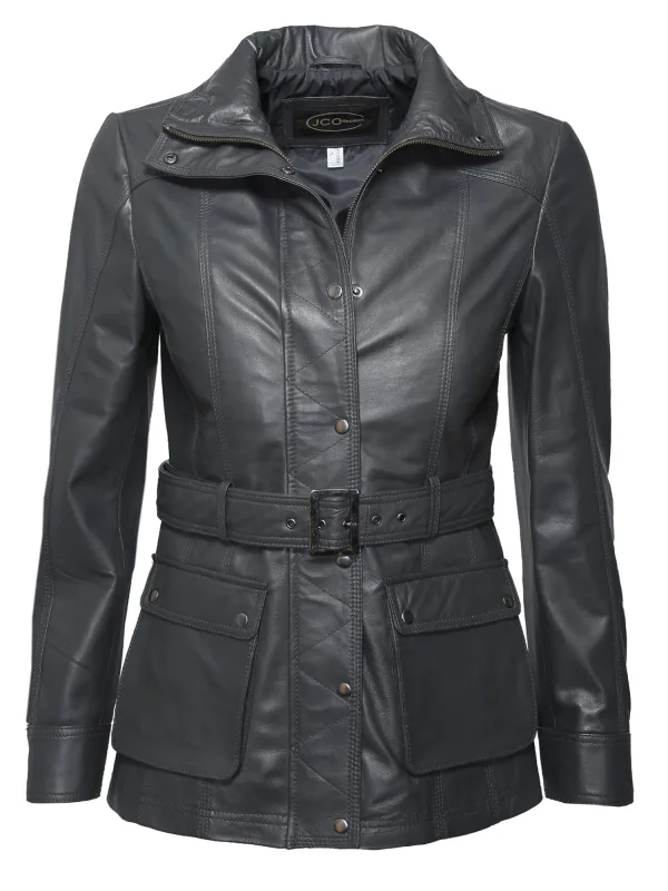 Design: Verborgen rits, Opgezette zakken, Met riem; Type sluiting: Ritssluiting; Type jas: Bikerjack; Voering: Licht gevoerd; Materiaal: Leer; Motief: Effen; Pasvorm: Slanke pasvorm