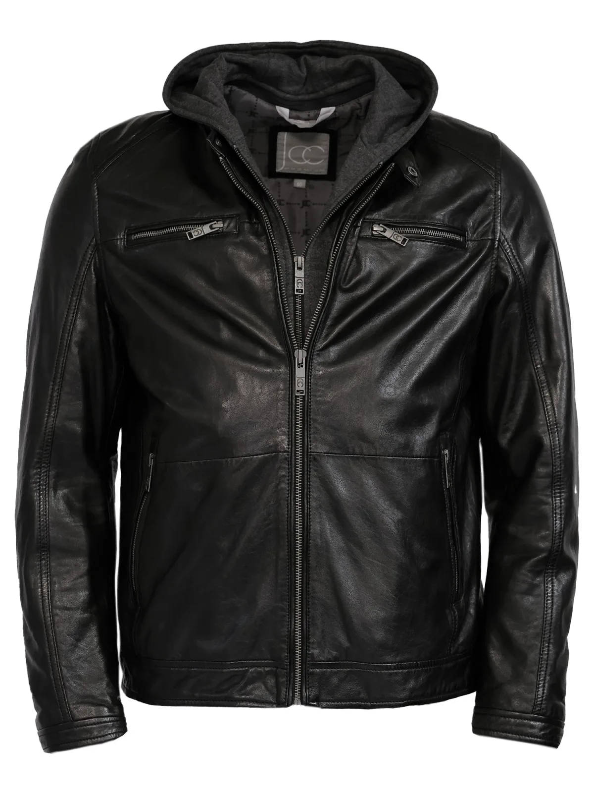 Design: Met capuchon, Borstzak, Binnenzak, Ritszakken aan de zijkant; Type sluiting: Ritssluiting; Voering: Licht gevoerd; Materiaal: Leer; Motief: Effen; Extra's: Gladde stof; Pasvorm: Normale pasvorm