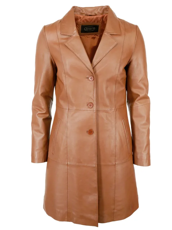 Type mantel: Klassieke mantel; Design: Knop placket, Revers kraag; Type sluiting: Knoopsluiting; Voering: Licht gevoerd; Materiaal: Leer; Motief: Effen; Extra's: Op staal naden; Pasvorm: Slanke pasvorm; Lengte: Normale lengte
