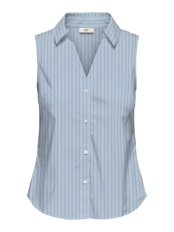 Blouse type: Klassieke blouse; Design: Gevoerde zoom/rand, Ronde zoom; Type sluiting: Knoopsluiting; Materiaal: Katoen; Motief: Gestreept; Extra's: All-over patroon, Voelt zacht aan; Pasvorm: Normale pasvorm; Armlengte: Mouwloos; Lengte: Normale lengte
