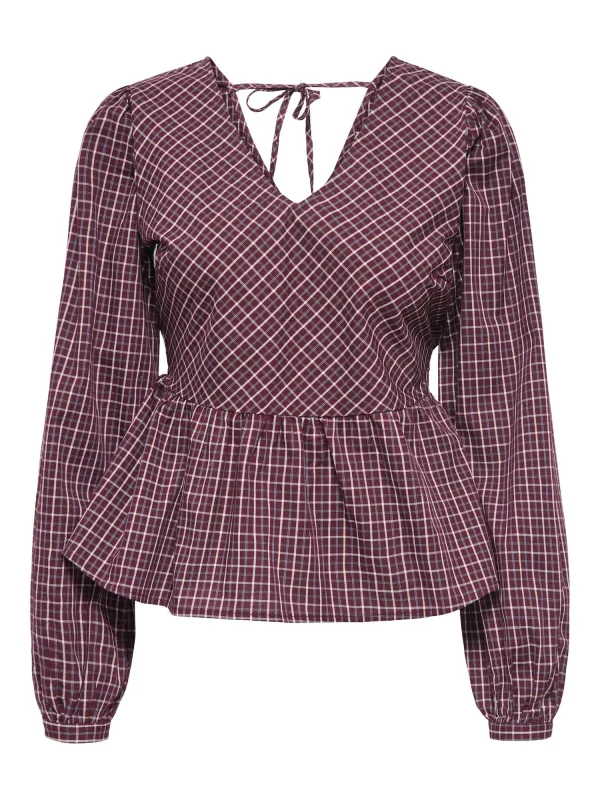 Blouse type: Blouseshirt; Design: Om te knopen/binden; Materiaal: Katoen; Motief: Geruit; Kraag: Zonder kraag; Details: Gedrapeerd; Extra's: All-over patroon; Pasvorm: Normale pasvorm; Armlengte: Lange mouw; Lengte: Normale lengte