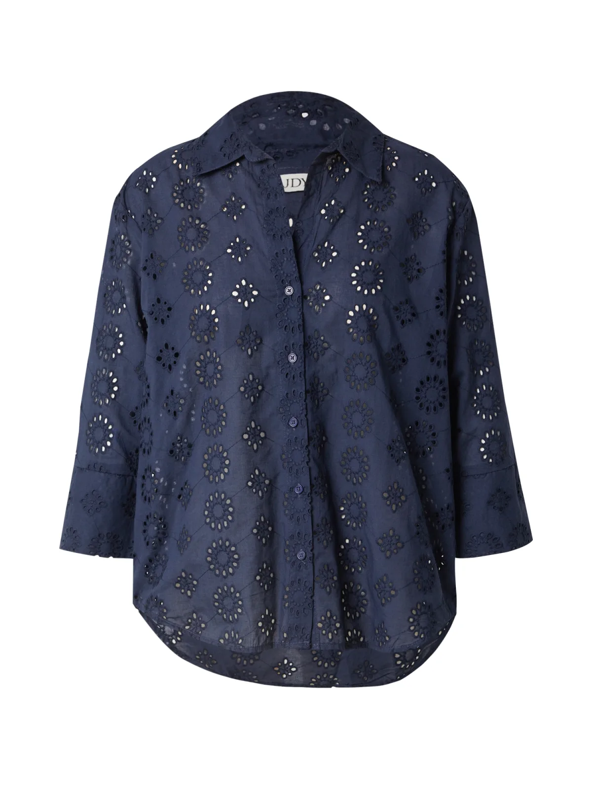 Blouse type: Klassieke blouse; Design: Ronde zoom, Overcut schouder; Type sluiting: Knoopsluiting; Materiaal: Katoen; Motief: Bloemenprint; Details: Borduursels, Mesh; Extra's: Applicaties, Voelt zacht aan; Pasvorm: Losse pasvorm; Armlengte: Driekwart mouw; Lengte: Normale lengte