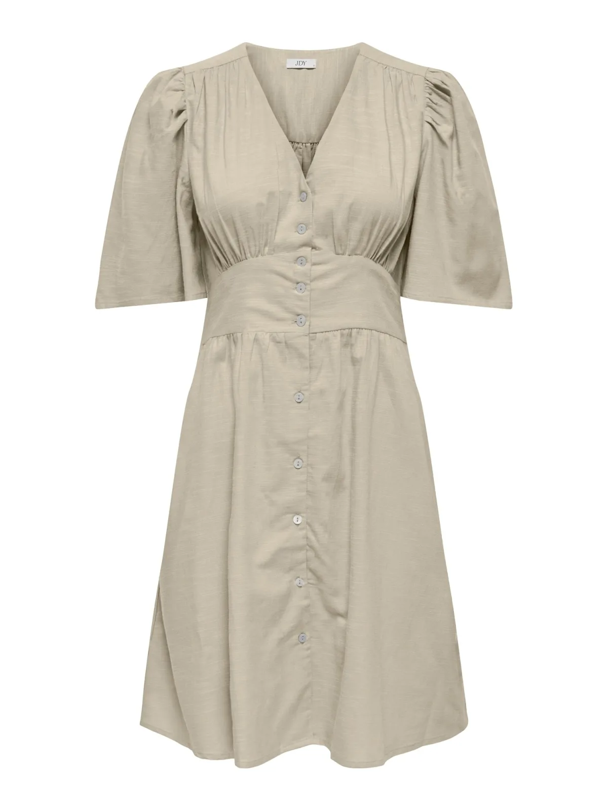 Design: Knop placket, Pofmouwen; Type sluiting: Knoopsluiting; Materiaal: Katoen, Viscose; Motief: Mélange; Kraag: Zonder kraag; Details: Gedrapeerd; Extra's: Slubstructuur, Voelt zacht aan; Lengte: Kort/mini; Snit: Getailleerd; Pasvorm: Normale pasvorm; Armlengte: Halve mouw