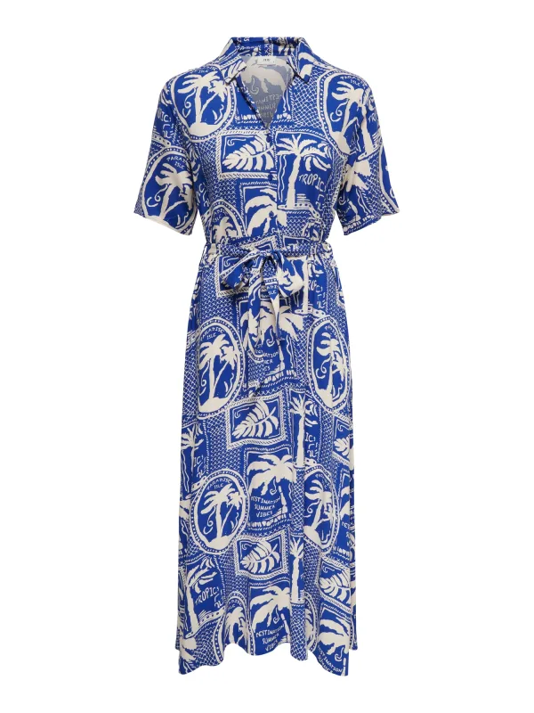 Design: Gevoerde zoom/rand, Turn-down kraag, Tailleriem; Type sluiting: Knoopsluiting; Materiaal: Viscose; Halstype: Polokraag; Extra's: All-over patroon, Gladde stof; Lengte: 7/8 lengte; Snit: Getailleerd; Pasvorm: Normale pasvorm; Armlengte: Halve mouw