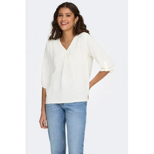 Deze top voor dames van JDY is gemaakt van polyester. Het model heeft een V-hals en halflange mouwen.details van deze top:• stijlnaam: JDYDIVYA• oprolfunctie