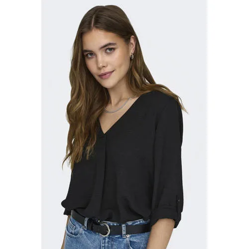 Deze top voor dames van JDY is gemaakt van polyester. Het model heeft een V-hals en halflange mouwen.details van deze top:• stijlnaam: JDYDIVYA• oprolfunctie