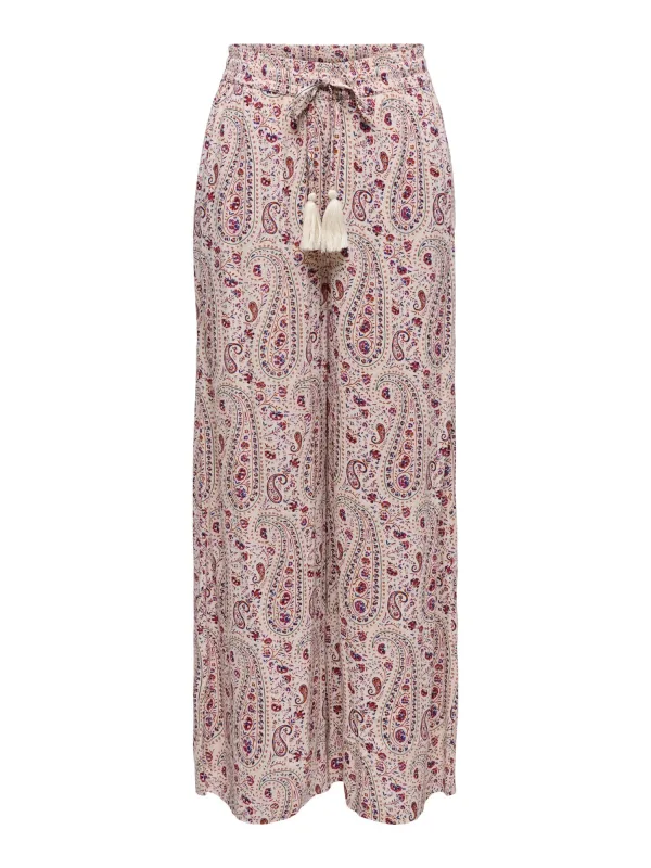 Design: Taille met trekkoord, Elastische taille/zoom; Type sluiting: Elastische band; Materiaal: Viscose; Motief: Paisley; Details: Gedrapeerd; Extra's: Franjes, All-over patroon; Lengte: Lang/maxi; Pasvorm: Wide leg; Taillehoogte: Mid waist