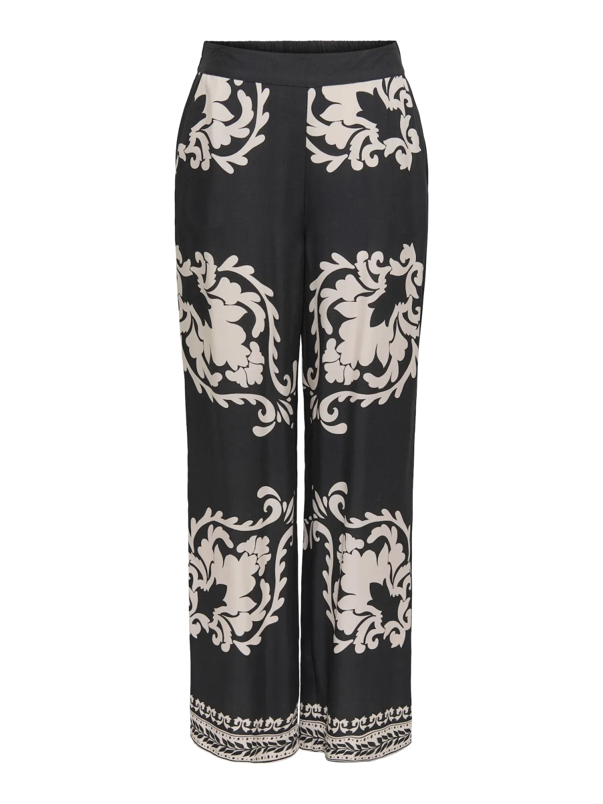 JDY Broek ‘JDYMaggie’ crème / zwart