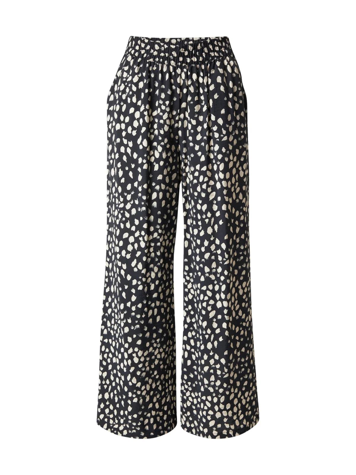 Design: Gevoerde zoom/rand, Elastische taille/zoom, Zakken aan de zijkant; Materiaal: Viscose; Motief: Gestippeld; Details: Gedrapeerd; Extra's: All-over patroon, Gladde stof; Lengte: Lang/maxi; Pasvorm: Wide leg; Taillehoogte: High waist
