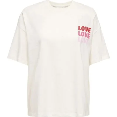 Specificaties: * Pasvorm: oversized fit; ronde hals; korte mouwen * Kleur: wit – roze * Materiaal: 100% katoen
