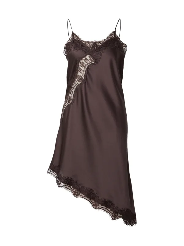 Design: Asymmetrische zoom, Zoom/rand met boord, Diepe snit/decolleté; Materiaal: Satijn; Halstype: Wikkeltop; Motief: Effen; Soort bandjes: Spaghettibandjes; Details: Kant; Extra's: Verstelbare bandjes, Gladde stof, Koele grip; Lengte: Knielengte; Snit: Recht; Pasvorm: Normale pasvorm; Armlengte: Mouwloos