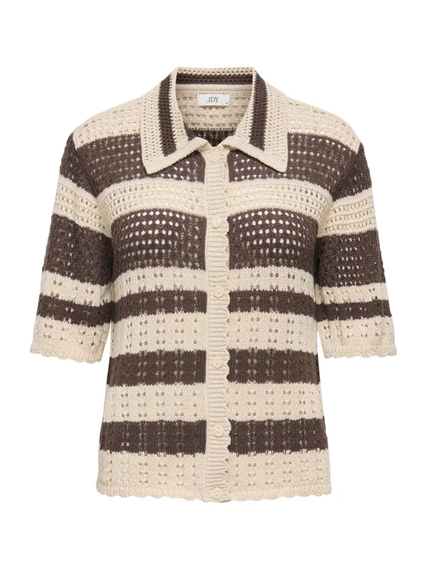 Design: Turn-down kraag, Geschulpte zoom; Type sluiting: Knoopsluiting; Materiaal: Knitwear; Halstype: Polokraag; Motief: Gestreept; Details: Mesh; Extra's: Met textuur, Voelt zacht aan; Pasvorm: Losse pasvorm; Armlengte: Halve mouw; Lengte: Normale lengte
