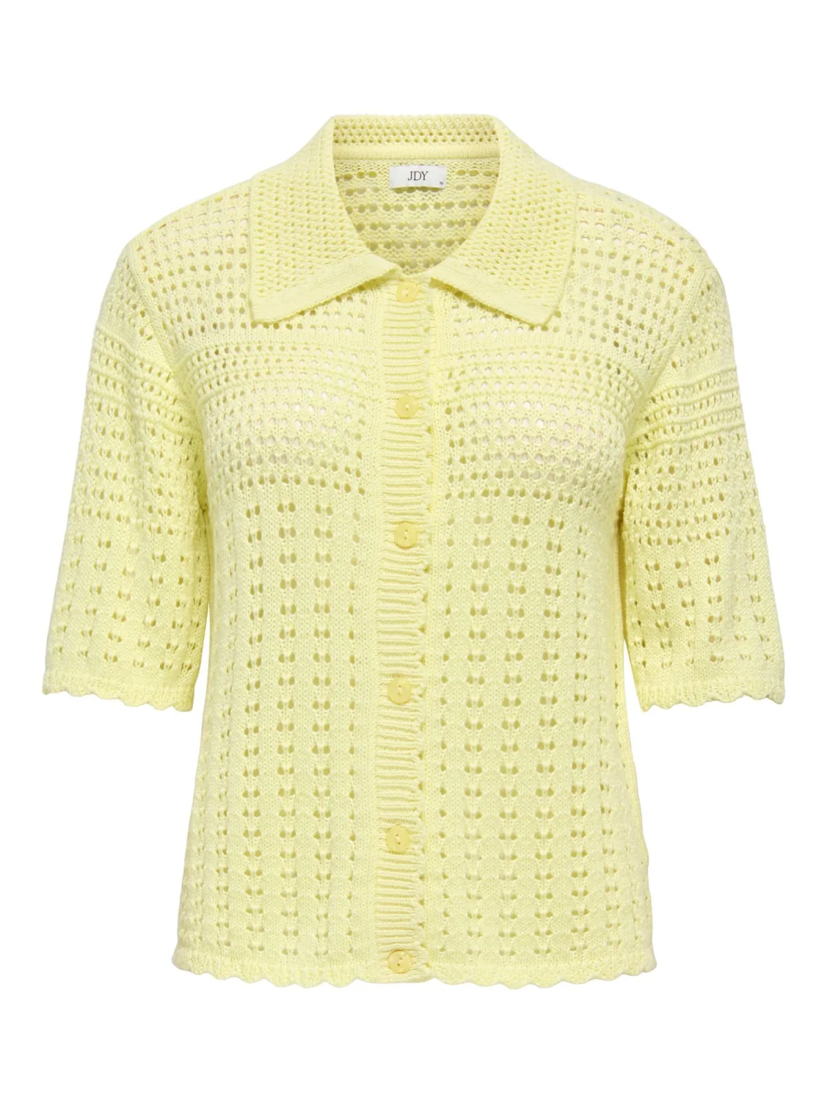 Design: Omgeslagen zoom; Type sluiting: Knoopsluiting; Materiaal: Knitwear; Halstype: Polokraag; Motief: Effen; Details: Mesh; Extra's: Op staal naden; Pasvorm: Normale pasvorm; Armlengte: Halve mouw; Lengte: Normale lengte
