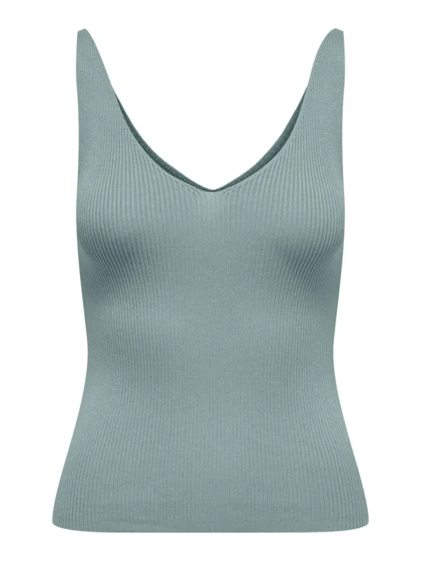 Design: Rechte zoom, Geribbeld gebreid, Diepe snit/decolleté; Materiaal: Knitwear; Halstype: V-hals; Soort bandjes: Normale bandjes; Extra's: Met textuur, Voelt zacht aan; Pasvorm: Slanke pasvorm; Armlengte: Mouwloos; Lengte: Normale lengte