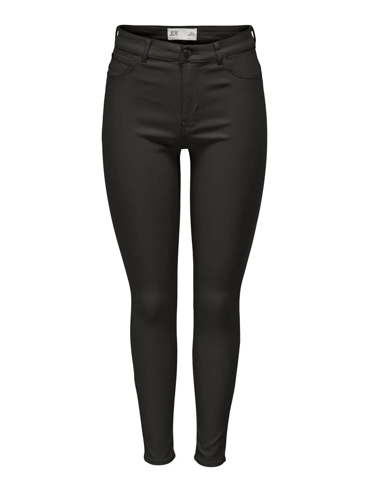 Deze JDY broek heeft een skinny pasvorm en een high waist. De broek komt met riemlussen, rits- en knoopsluiting en vijf broekzakken. De broekspijpen hebben een rits. Gemaakt van viscose.