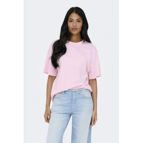 Dit JDY JDYCARLA dames T shirt is een ontspannen basic met een moderne uitstraling. De oversized pasvorm geeft extra ruimte rond schouders en taille, waardoor het T shirt losjes om het lichaam valt. De korte mouwen en de ronde hals zorgen voor een tijdloze vorm die makkelijk te combineren is met verschillende stijlen. De jersey kwaliteit van 100 procent katoen voelt zacht aan en beweegt soepel met je mee tijdens dagelijkse activiteiten.Comfortabele pasvorm met moderne details Oversized fit voor een ruim en ontspannen silhouet Korte mouwen die de bovenarmen luchtig bedekken Ronde hals voor een klassieke en makkelijk draagbare look Gemaakt van 100 procent katoen in soepele jersey kwaliteit Printopdruk aan de voorkant voor een eigentijdse uitstraling Zonder zakken voor een rustige en strakke voorkant Maatadvies: dit artikel valt normaalAlledaags gemak in verschillende momentenMet de luchtige pasvorm en het zachte materiaal is dit T shirt geschikt voor ontspannen dagen thuis, een casual werkdag of een weekendje weg. Het draagt prettig onder een vest of blazer en voelt ook solo comfortabel op warmere dagen.JDY als eigentijds merkJDY richt zich op moderne collecties die goed aansluiten op dagelijkse outfits. Het merk combineert actuele pasvormen met draagbare ontwerpen, zodat je eenvoudig een garderobe opbouwt die bij veel momenten past.Een veelzijdig T shirt dat elke dag weer voor comfort en een moderne uitstraling zorgt.